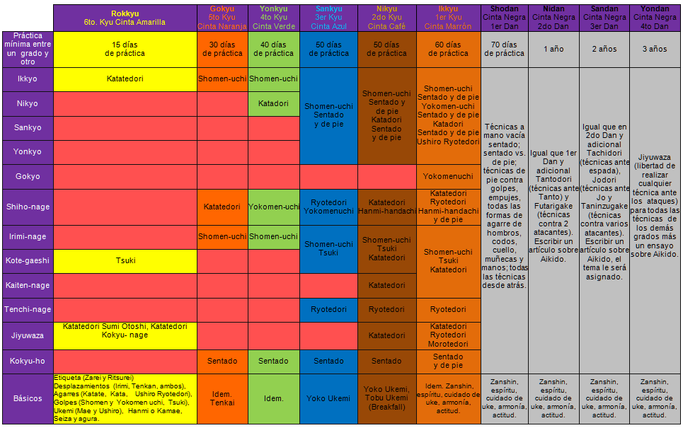 Sistema de Grados o Cintas de Zanshin Dojo Aikido Guatemala