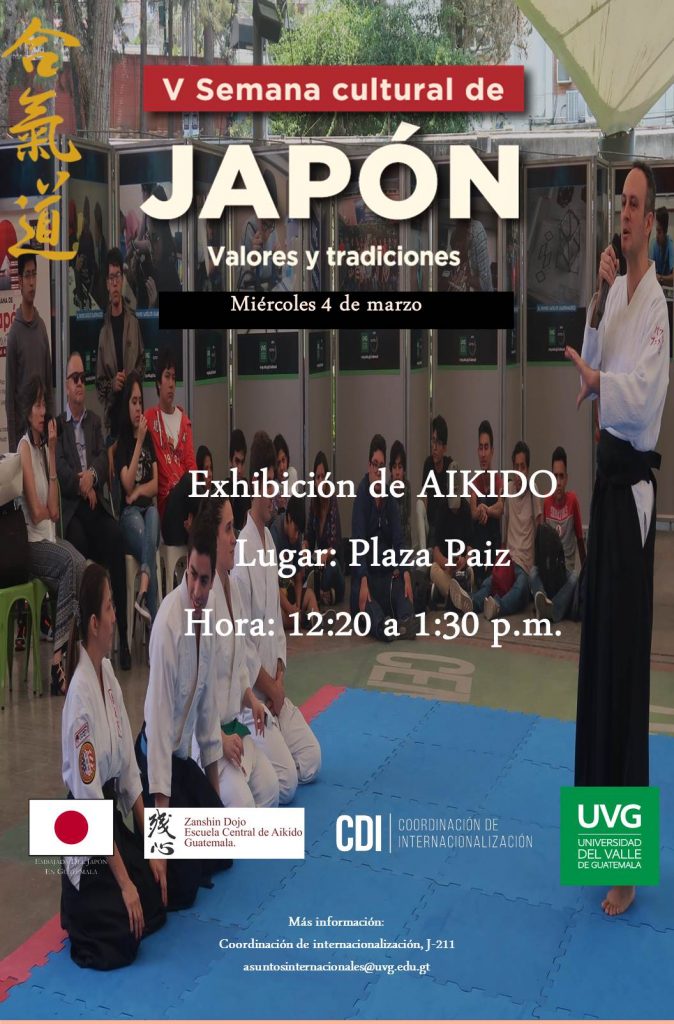 Presentación 🥋 AIҞIÐO 合氣道 : Miércoles 04 de marzo de 2,020, a las 12:20pm en Plaza Paiz Riera, en el marco de la “V Semana Cultural de Japón ” ⛩ en la Universidad del Valle de Guatemala 🇬🇹